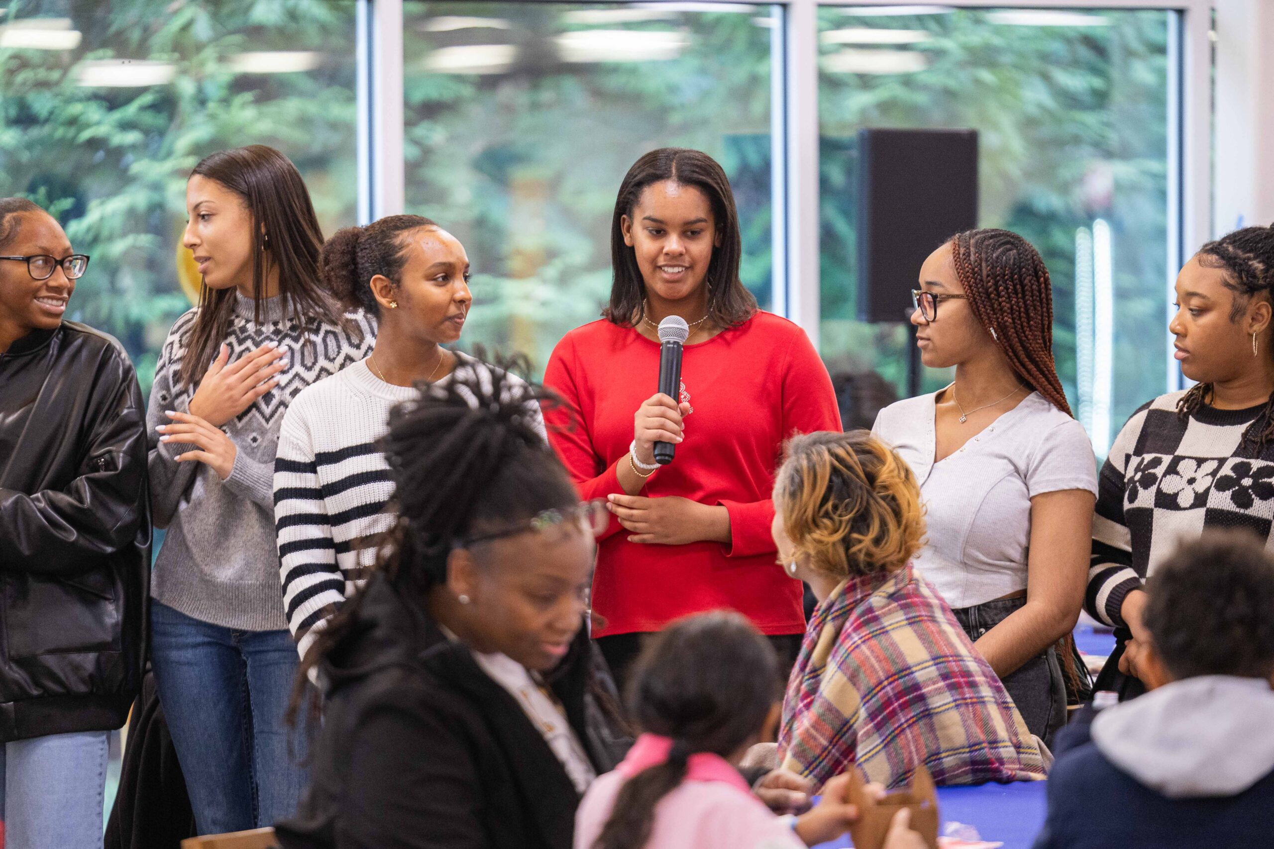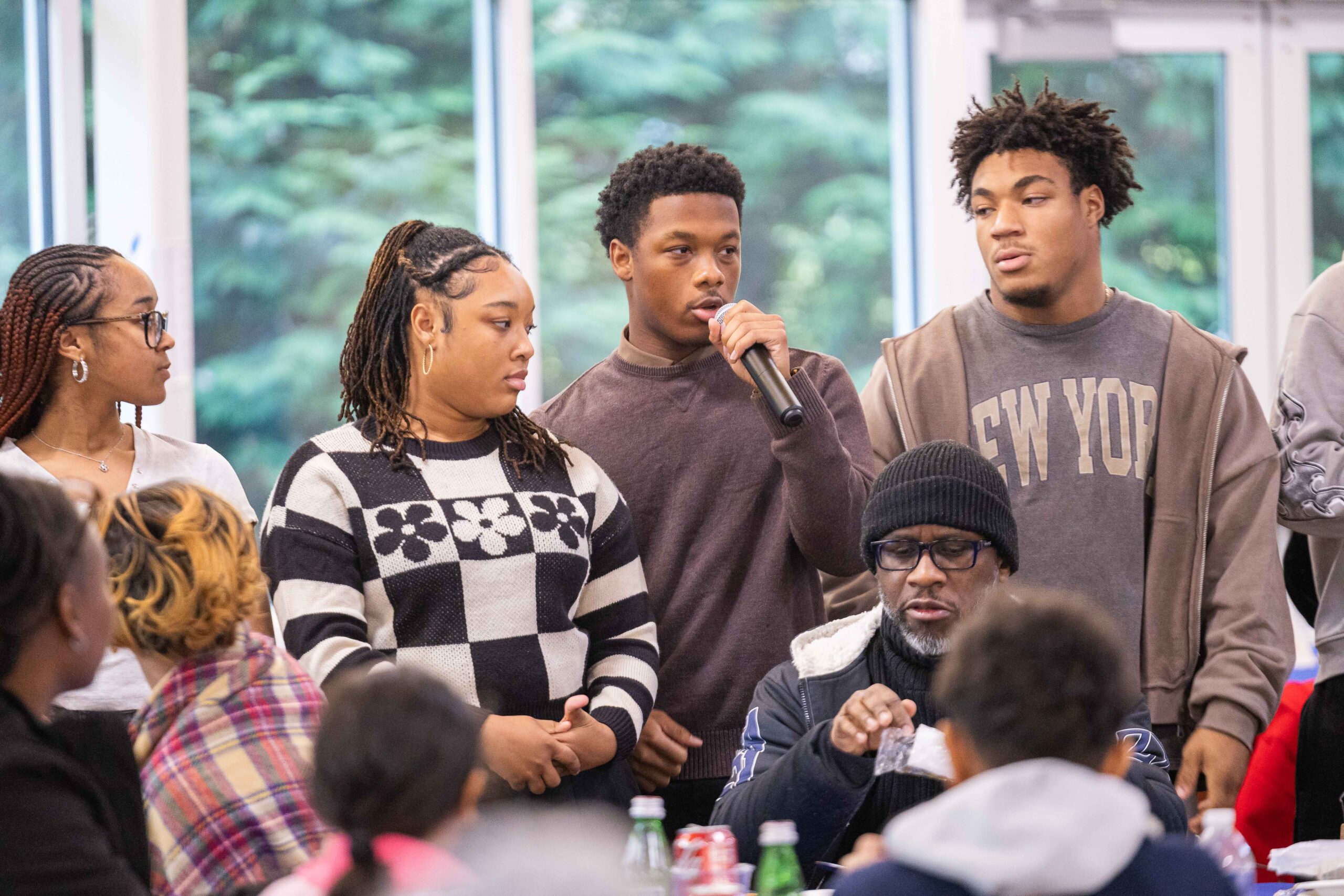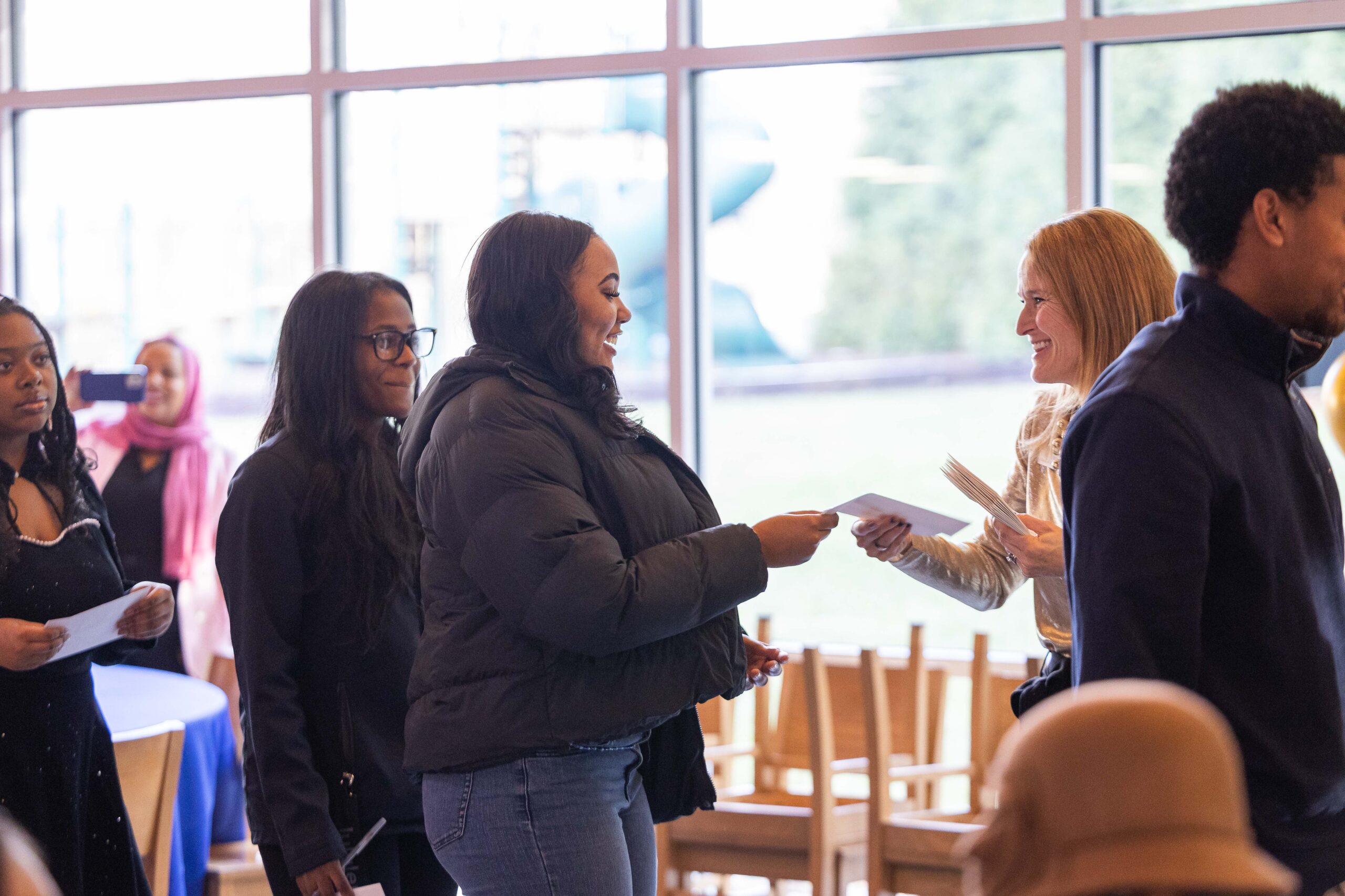 Last weekend more than 300 B.E.S.T. family members and students gathered at The Boys’ Latin School of Maryland to kick off the holiday season together. The event began with a special gathering for Senior families, where the Class of 2026 was recognized as soon-to-be Alumni. Families heard a heartfelt letter from B.E.S.T. Deputy Director and B.E.S.T./Garrison Forest Alumna Crystal Lee ’96, who encouraged students to pay it forward and support younger B.E.S.T. students as they grow. Seniors took part in a “give back” ceremony, offering their first symbolic gift to B.E.S.T. to Jess Suriano, Executive Director, and receiving a B.E.S.T. Alumni lapel pin from Peggy Bittner, Director of Programs and Alumni Relations, to mark the moment.
