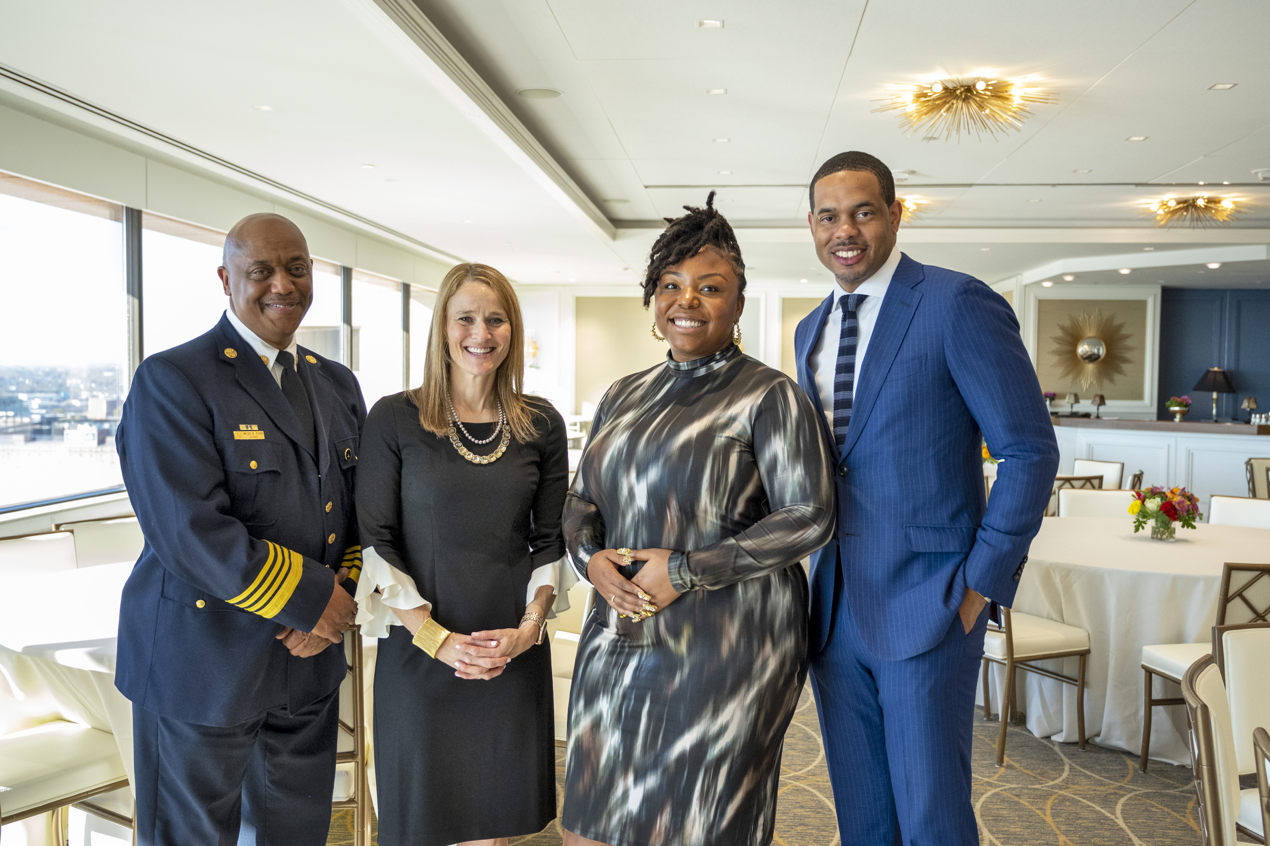 Published November 17, 2022 at 2560 × 1705 in Leaders on Leadership Breakfast Honored Speaker Chief Niles R. Ford; Jessica Suriano, B.E.S.T. Executive Director; Cinneah El-Amin ’12 Honored Alumna Speaker; Karlo Young, B.E.S.T. Board President.